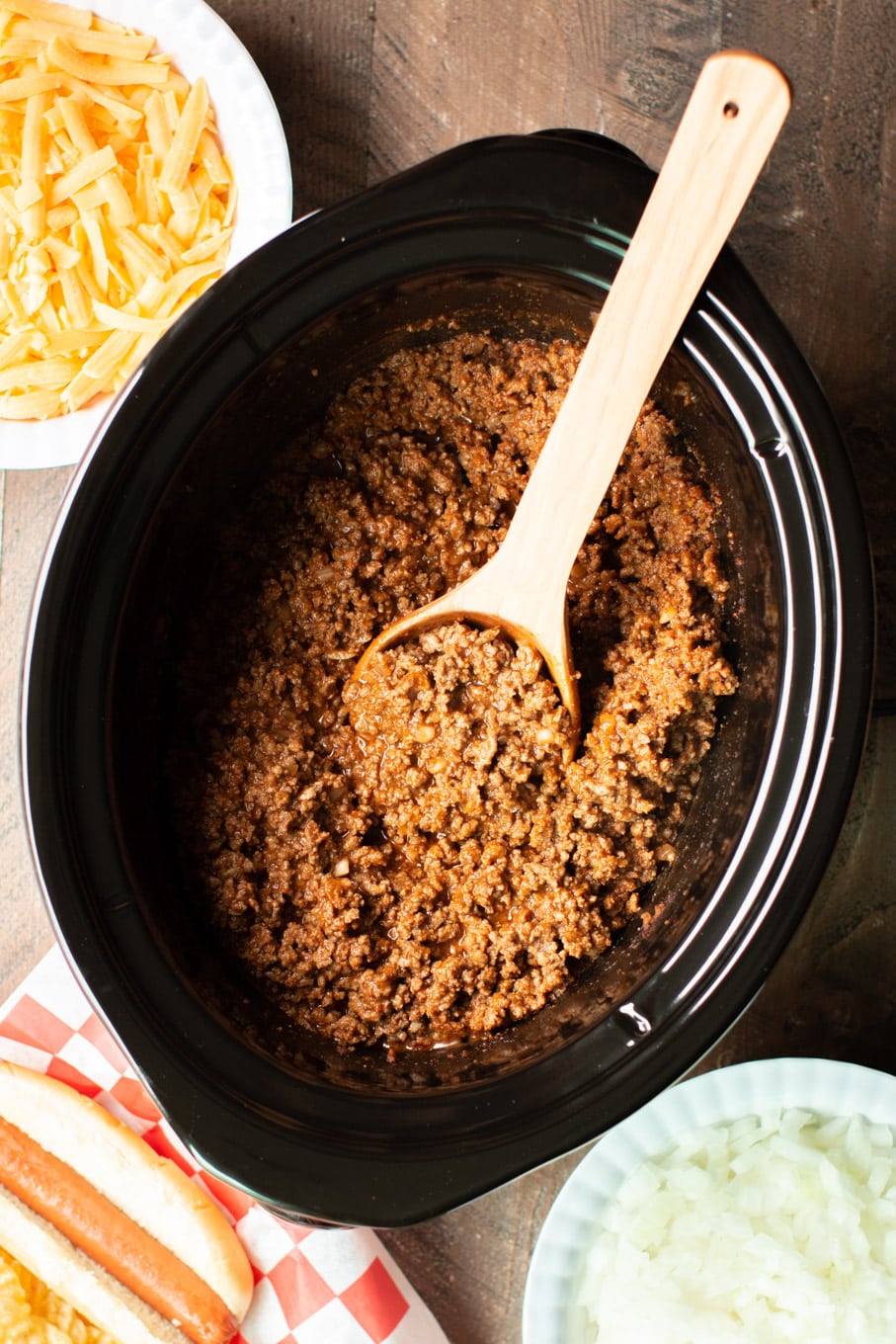 - Serve this hot dog chili in a crockpot, along side crockpot hot dogs.